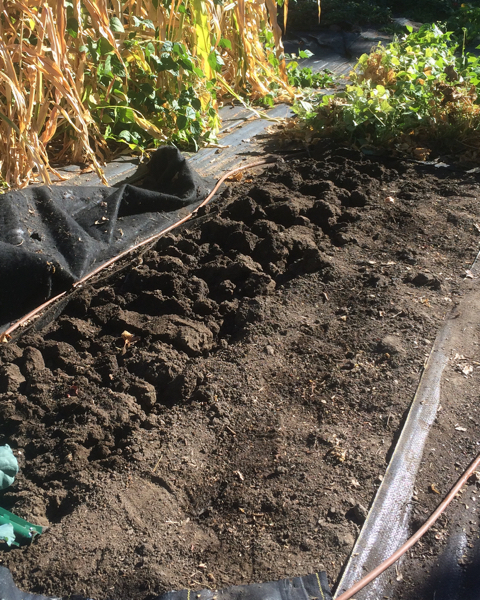 Soaker drills with automated watering: "Soaker drills" meaning the lines of mini soaker hose, running along slits cut in the weed fabric, that I've been mentioning in the past few posts. (If I'm going to keep making up my own phrases, maybe this blog needs a glossary.) The soakers are right next to the seed, and the automated watering timer allows us to run the watering for five minutes a day (well, we could even water for one minute a day, I believe) in addition to the usual substantial watering every several days. So the seeds don't dry out.